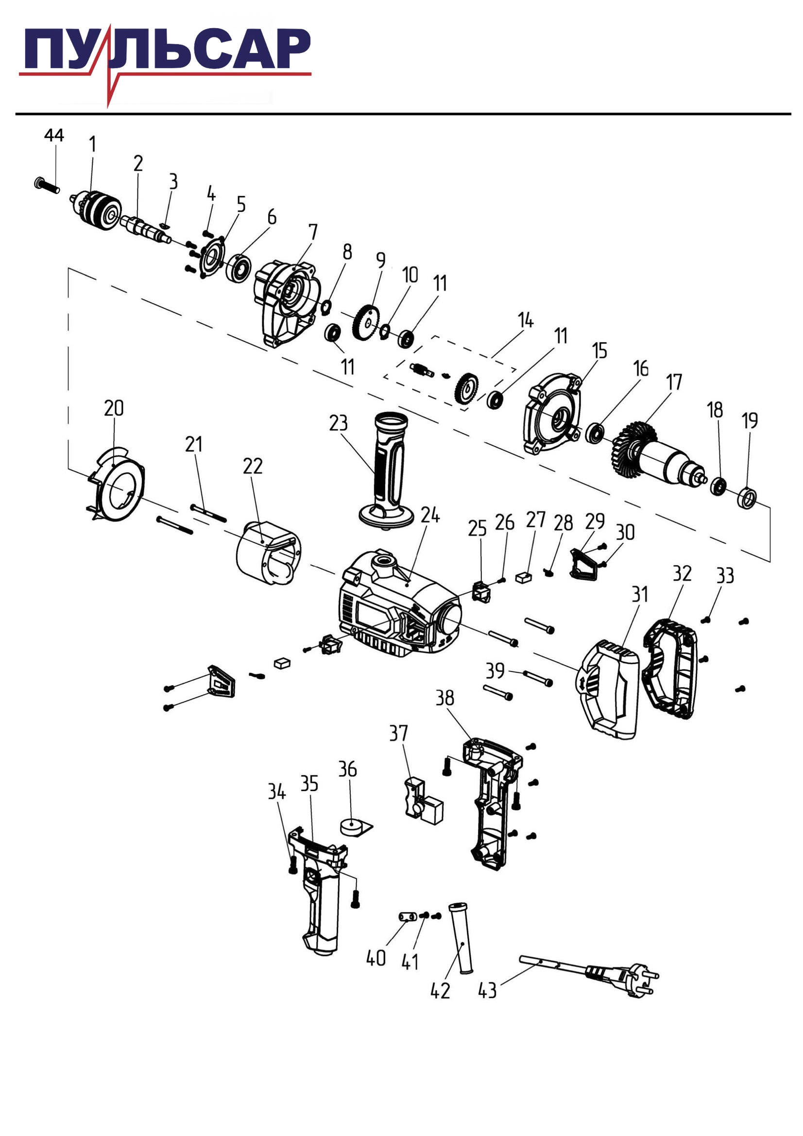 ДЕТАЛИРОВКА ДРЕЛИ ПУЛЬСАР ДЭ1100 (916-592)