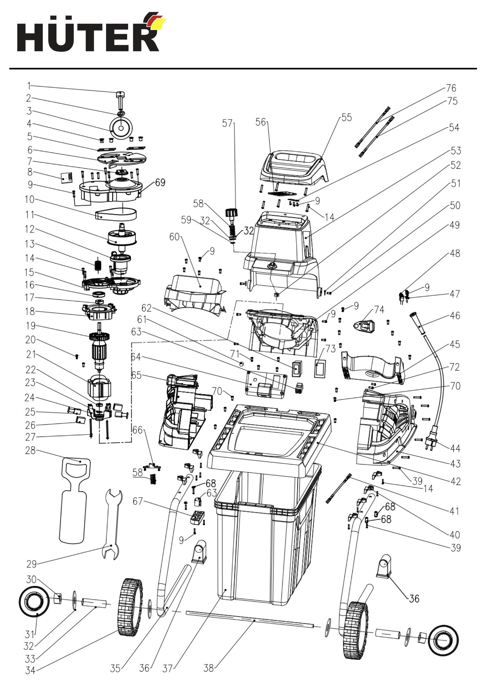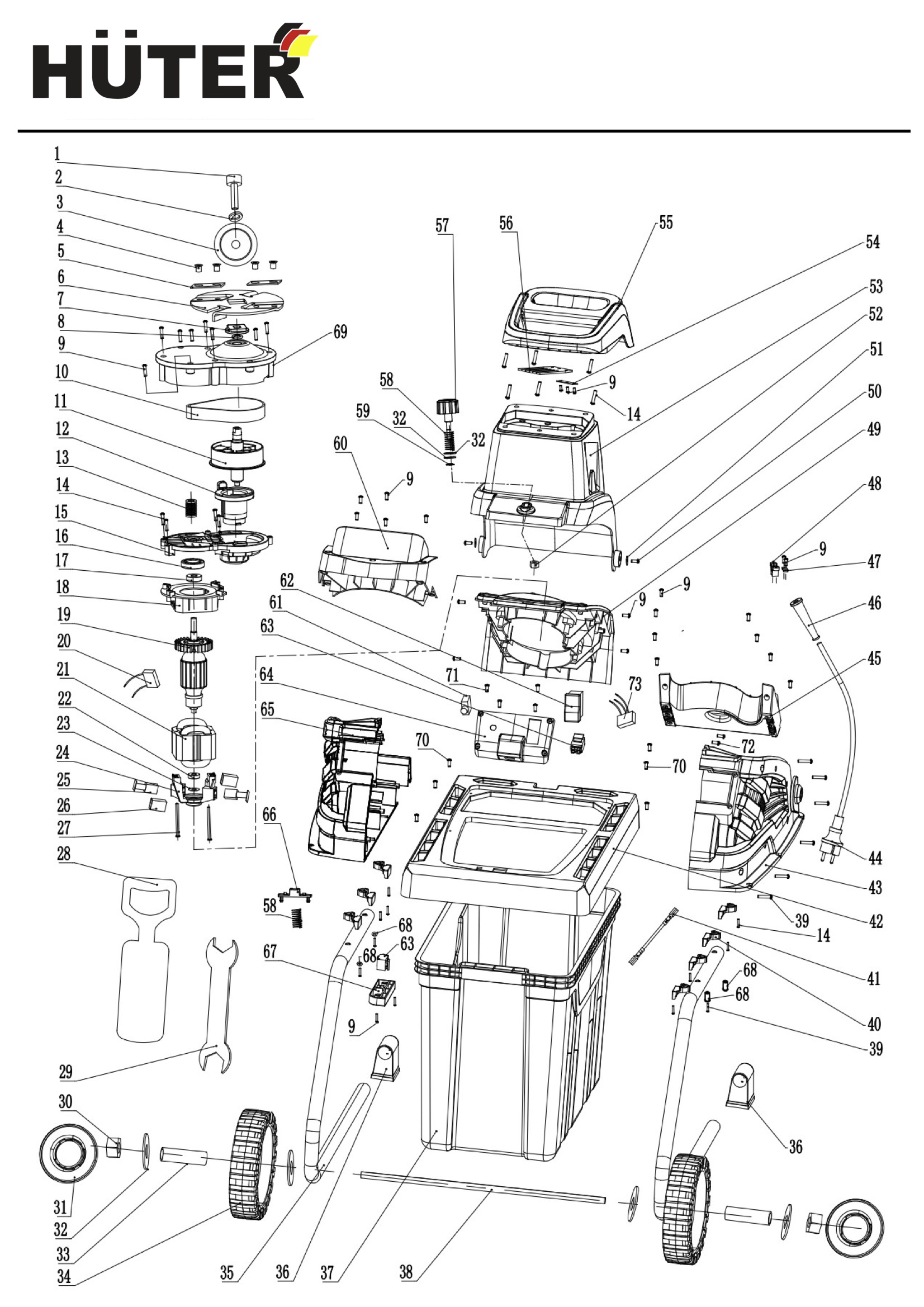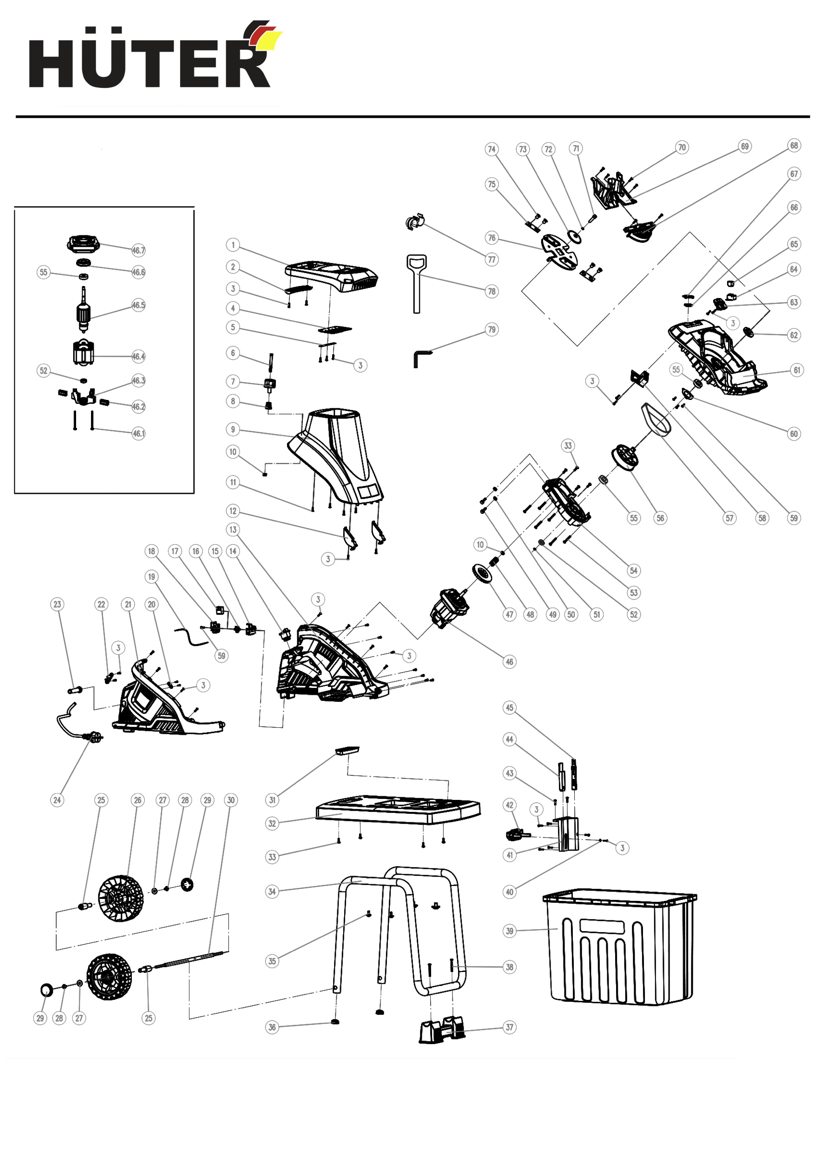 ДЕТАЛИРОВКА ИЗМЕЛЬЧИТЕЛЯ HUTER ESH-2500T (70/13/16)